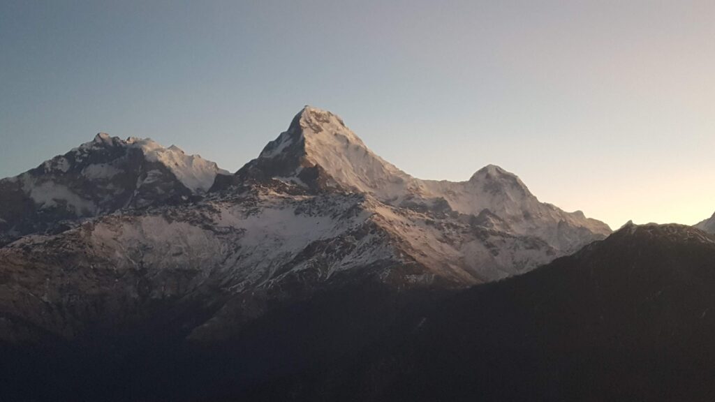 An early, ¾ hr, steep trek leads to Poon Hill’s grassy summit: in time for sunrise and superb, unobstructed, views of